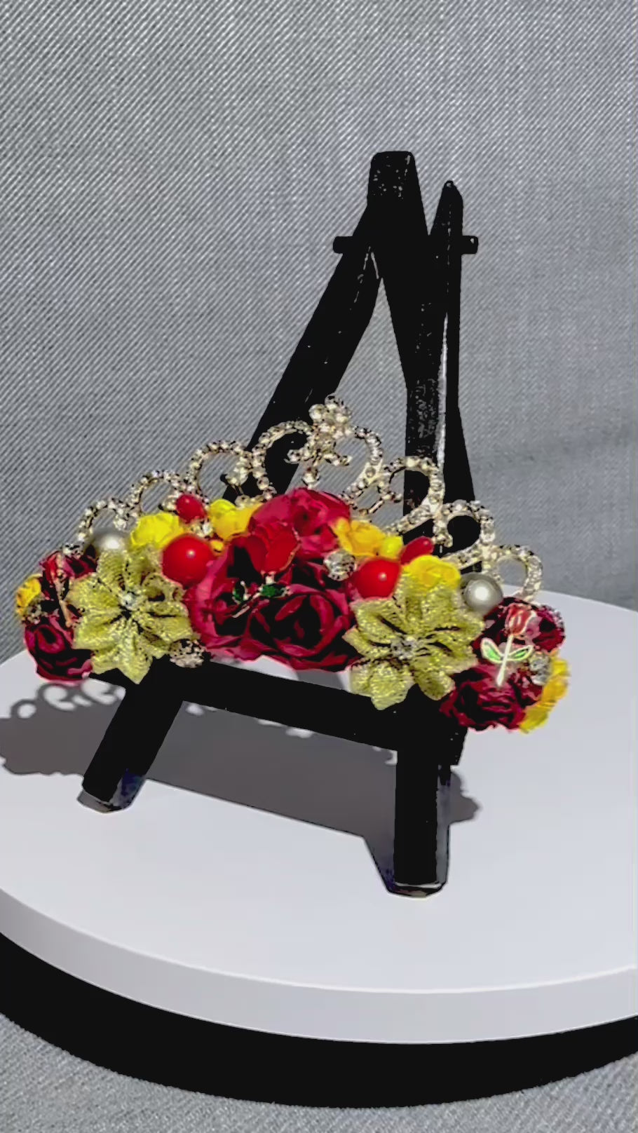 Step into the magic of the ballroom with this Belle-inspired clip-on tiara, designed for every princess who dreams of her own fairy tale! This stunning Beauty and the Beast hair accessory features deep red and golden yellow roses, shimmering gold flowers, and radiant rhinestone accents reminiscent of Belle’s iconic gown.